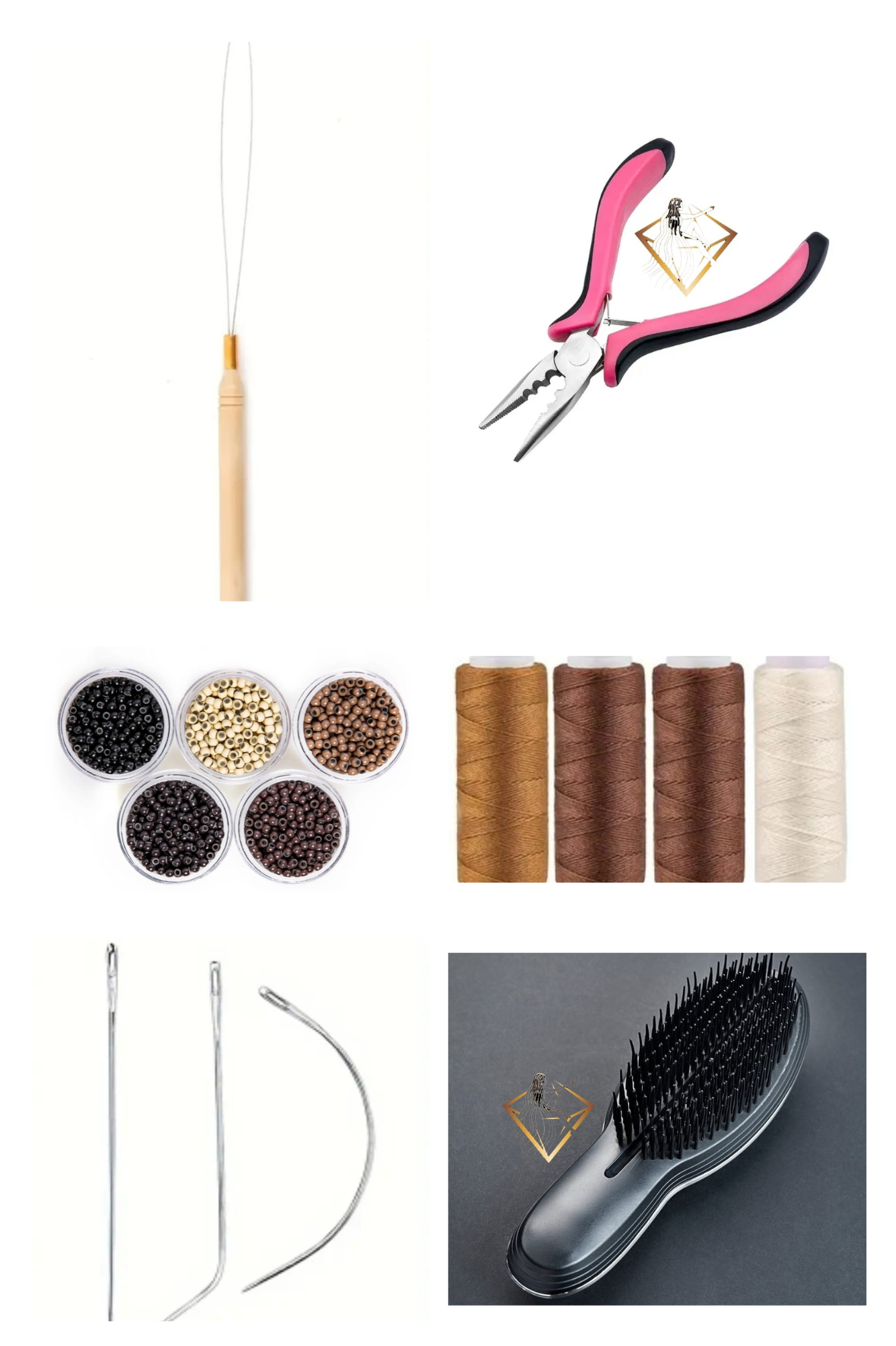 Setul de ac și ață profesională este esențial pentru aplicarea extensiilor cusute. Ața rezistentă, dar fină, oferă o fixare sigură și discretă, iar acul curbat permite coaserea ușoară și precisă, fără a deteriora părul natural. Perfect pentru hairstyliști, dar și pentru utilizare acasă.